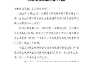体育资讯04月25日讯 中足联官方发布处罚,南通支云官员杜晨用椅子砸广告牌,禁赛3场,罚款3万。