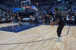 体育资讯4月26日讯 今日,湖人记者 Mike Trudell晒出了G3赛前的热身片段。