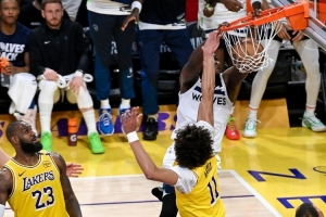 体育资讯4月26日讯 NBA季后赛西部首轮G3,湖人104-116不敌森林狼。