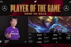 体育资讯4月26日讯 LPL第二赛段组内赛UP零封EDG,Wako伊泽瑞尔打出6/0/6战绩,斩获UP对战EDG首局MVP。