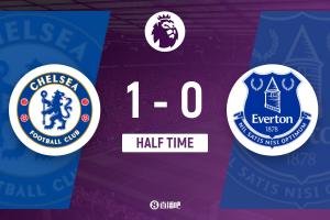 上半场补时4分钟,切尔西1-0埃弗顿。