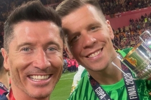此役什琴斯尼担任巴萨首发门将,莱万因伤缺席。莱万社媒晒出与什琴斯尼手拿小型奖杯的合照,庆祝球队夺冠。