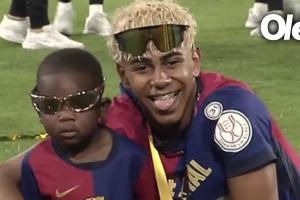 比赛结束后,17岁的亚马尔与弟弟一起庆祝。