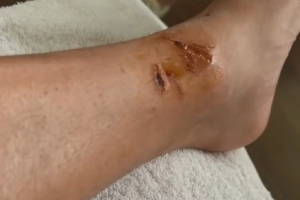 体育资讯4月27日讯 今天,海港后卫李帅更新社媒,晒出了自己脚踝的伤口照。
