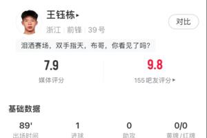 王钰栋本场比赛数据↓