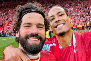 赛前,阿利森通过社交媒体晒出与范迪克的合照:🏆🥇📸