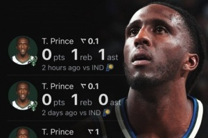 此役,普林斯打了15分钟,三分3中0,没有得分,仅1板1助。