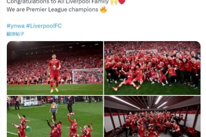 远藤航配文写道:“特别的时刻,特别的日子。祝贺所有利物浦大家庭的成员们! 我们是英超联赛冠军!”