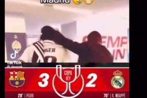 国王杯决赛的争议仍在继续发酵,法尔在个人Instagram账号上分享了一段视频:“吕迪格在巴塞罗那战胜皇家马德里后哭泣”,并配上了大笑的表情符号。视频则是吕迪格因脸部受伤返回更衣室的画面。