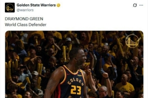 赛后,勇士官方晒出追梦照片,并写道:“德拉蒙德-格林,世界级的防守球员。”