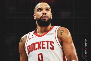 赛后火箭官方晒出本场获胜海报,狄龙-布鲁克斯登上封面。