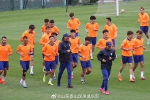 4月30日下午,山东泰山队在基地内进行了与青岛海牛的赛前官方训练。