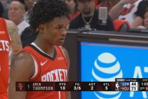 阿门出战17分钟,投篮6中3,罚球6中5,砍下11分1篮板2助攻5抢断1盖帽,正负值+29!