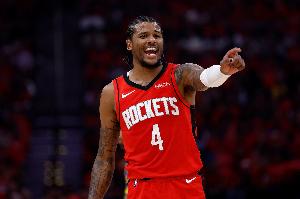 体育资讯5月1日讯 NBA季后赛西部首轮G5,火箭半场76-49领先勇士。