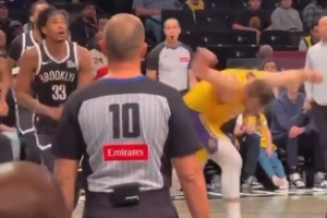 赛前美记Tedd Buddwell晒出一个常规赛的片段,在今年三月湖人对篮网的比赛中,篮下克拉克斯顿猛推了东契奇一下,戈布尔就在眼前却视而不见,东契奇也显得很无奈。