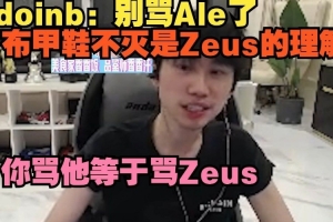 Doinb在直播中透露Ale跟自己说网上都在骂他格温,并说道:“格温布甲鞋不灭是Zeus的理解,不是Ale开发的,不要管别人怎么说,你是我心目中的前三上单!”