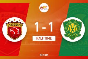 上半场伤停补时4分钟,半场结束,上海海港暂1-1北京国安。