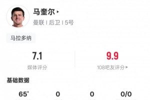 体育资讯5月2日讯 欧联杯半决赛首回合,曼联客场3-0毕尔巴鄂竞技。本场比赛马奎尔首发出战,送出2次关键传球,传球成功率达到97.1%,还有2次解围和1次抢断,评分7.1。