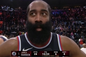 体育资讯5月2日讯 NBA季后赛首轮G6,快船111-105击败掘金拖入抢七,赛后,哈登接受了采访。