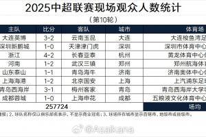 2025中超联赛现场观众人数统计(第10轮)