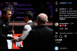 赛后奥沙利文更新社媒动态,发布现场照片,并写道:“恭喜赵心童进入决赛,祝你好运!感谢所有粉丝在整个赛事中的支持。我会休息一段时间,然后以更强的姿态回归!”