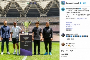 川崎前锋官方晒出这张合影,并配文:最后的战斗将在25:30开始,让我们带着坚定的决心把这座奖杯带回川崎。