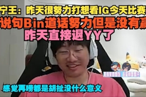 昨天很努力打想看IG今天比赛,说句Bin道话努力但是没有赢,昨天直接退YY了,感觉再唠都是胡扯没什么意义
