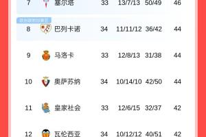 积分榜方面,巴萨以79分领跑,领先未赛的皇马7分。皇马本轮将主场迎战塞尔塔。