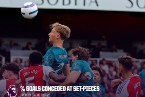 据Opta统计,阿森纳本赛季英超38.7%的失球来自于定位球,本赛季英超球队定位球失球占比最高。