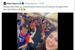赛后美媒晒出鲍尔默包机空运快船球迷前往丹佛看球的视频,并写道:“这趟回LA的航班将成为史上最安静的航程。”