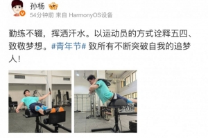 孙杨为照片配文写道:“勤练不辍,挥洒汗水。以运动员的方式诠释五四、致敬梦想。青年节致所有不断突破自我的追梦人!”
