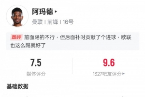 体育资讯5月4日讯 英超第35轮,曼联3-4不敌布伦特福德。阿玛德替补出战,贡献1粒进球,送出1次关键传球,2次过人成功,评分7.5。