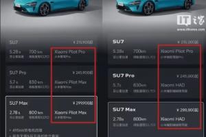 SU7 Pro 与 SU7 Max 的“小米智驾 Max”则改为“小米端到端辅助驾驶”。