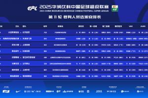 中超第11轮裁判安排: