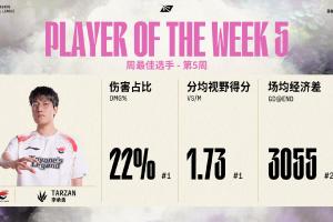 体育资讯5月5日讯 今日,LPL赛事官方公布了第二赛段周最佳选手,由AL打野选手Tarzan收获该荣誉。