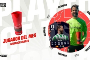 体育资讯3月29日讯 官方消息,贝蒂斯中场伊斯科当选西甲3月最佳球员,在月最佳评选中击败了姆巴佩、马科斯-阿隆索等球员。