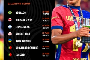 体育资讯5月6日讯 亚马尔是目前金球奖的热门人选,他在金球奖的赔率力压拉菲尼亚和登贝莱排名第一。亚马尔有望成为金球奖历史最年轻的获得者。