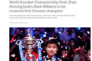 世锦赛落下大幕后,丁俊晖发文祝贺赵心童,而英国《天空体育》也将两位中国球员进行一番对比:“丁俊晖拿到2005年英锦赛冠军,收获了斯诺克三大赛的第一个冠军奖杯,开启了中国斯诺克时代,但丁俊晖在克鲁斯堡从未取得过赵心童这样的成就。赵心童一直被视为丁俊晖的接班人,奥沙利文和怀特早在2016年就看好赵心童是未来之星,如今赵心童取得决定性的突破,也终结了威廉姆斯夺得四冠的希望,值得一提的是,在赵心童的祖国,有多达1.5亿人见证了他的胜利。”