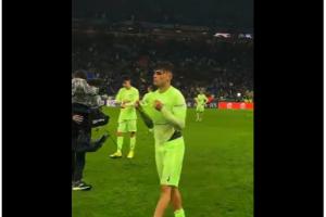 视频中,巴萨众将赛后泪目失落,但是互相鼓励+谢场,其中佩德里表现得心有不甘。