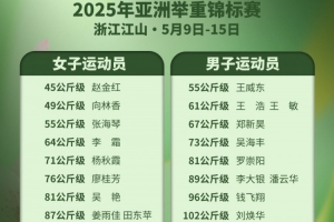 体育资讯5月7日讯 2025年亚洲举重锦标赛将于5月9日至15日在浙江江山举行,官方公布中国国家举重队亚锦赛名单。奥运冠军刘焕华作为中国男举压轴登场的选手在102公斤级亮相。