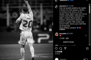 奥尔莫:我只剩下对这支球队和球迷的骄傲与憧憬...我们曾如此接近胜利,却最终失之交臂。我坚信这次经历将使我们更加强大,我们会让巴萨回到它应有的位置,再次一起享受胜利的喜悦。巴萨球迷们,让我们团结一致,迎接赛季末的挑战。巴萨万岁,永远!🩵❤️