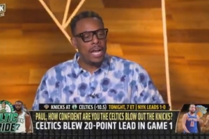 赛前,绿军名宿皮尔斯在演播室说:“如果凯尔特人输了G2,我向你保证,明天我会穿着睡衣、光着脚步行15英里(约24千米)来到这里,你可以把房子押在这场比赛上,你在演播室看到恐龙的概率都比绿军输球概率要高。”