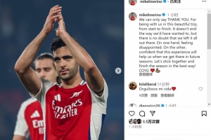 “一方面感到失望,另一方面相信这段经历会在未来赛季帮助我们。让我们团结一致,以最好的方式结束本赛季。加油枪手!”