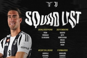 体育资讯5月9日讯 北京时间5月11日凌晨0:00,2024-25赛季意甲联赛第36轮,尤文图斯将客战拉齐奥。赛前,尤文官方公布本场比赛球队大名单,弗拉霍维奇领衔锋线,洛卡特利坐镇中场。