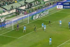 比赛第83分钟,国安禁区内断球,张玉宁门前空门机会推射打高。错失良机后张玉宁懊悔跪地。