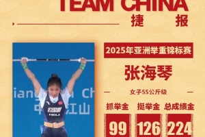 张海琴抓举99公斤、挺举126公斤、总成绩225公斤,独揽三枚金牌的同时,打破了这三项的亚洲青年纪录和世界青年纪录。