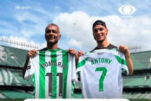 罗马里奥去到了贝蒂斯的主场,贝蒂斯球员安东尼非常开心,他与罗马里奥交换了球员,并感谢偶像的到来。