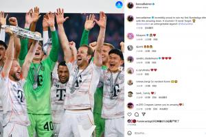 体育资讯5月11日讯 本轮德甲,拜仁以2-0击败门兴,并在赛后迎来了德甲冠军颁奖典礼,拜仁球员莱默尔在赛后更新了社交媒体。