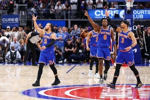 据统计,尼克斯在今年季后赛客场还没输过(5胜0负),但主场就赢了一场(1胜3负,他们只在首轮G1以123-112击败活塞)。