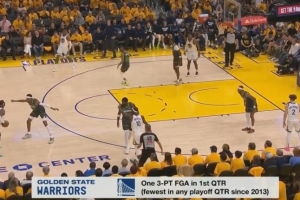 首节勇士全队三分1中0,2013年以来季后赛单节三分出手最低!